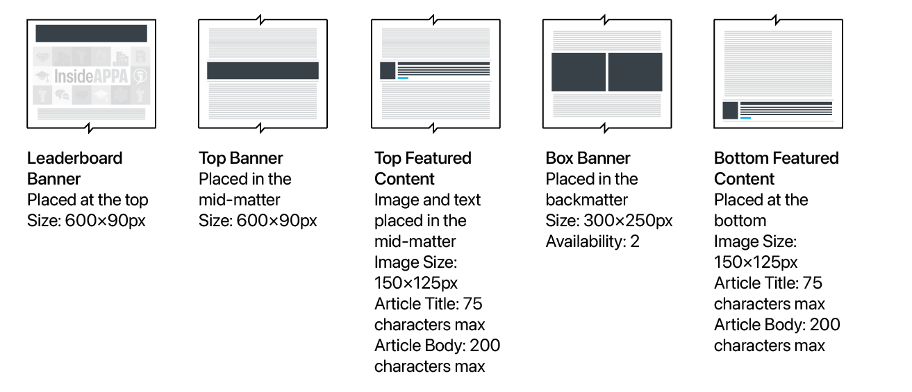 Payment Terms: All ads are payable before the publication date of each newsletter. The newsletter is published the first Thursday of each month. Ad rates represent two newsletter publications.