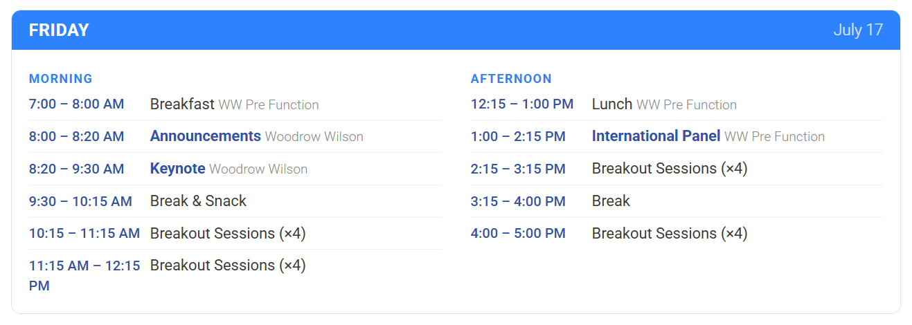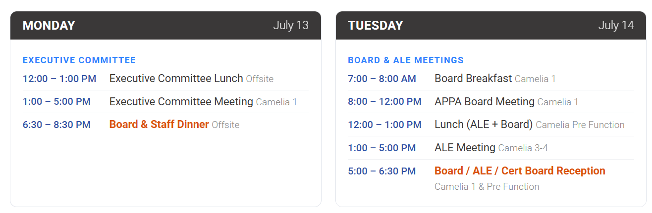 APPA's Annual Conference kicks off Thursday afternoon with our keynote followed by an opening reception. Attendee meals are provided for breakfast, lunch, and breaks throughout the conference. APPA has negotiated hotel rates for attendees—make sure to book your room before the hotel block expires.