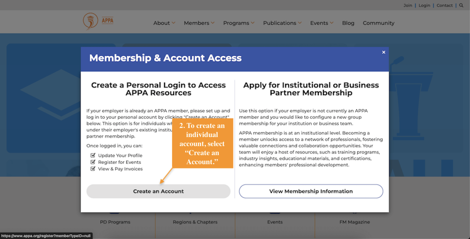 - Click here and follow the instructions for your appropriate member type. This will prompt you to create your login and complete the membership application.